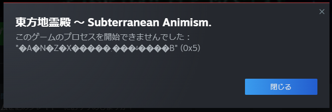 最近遊んでなかったSteamゲームを起動しようとしたら、「このゲームのプロセスを開始できませんでした」というエラーが表示され起動できなくなっていたので、その対応方法メモ